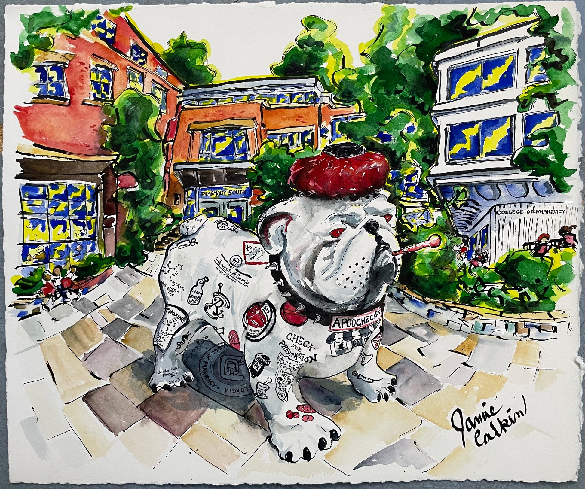 This limited edition fine art print of the UGA Pharmacy Dawg, Apoochecary!