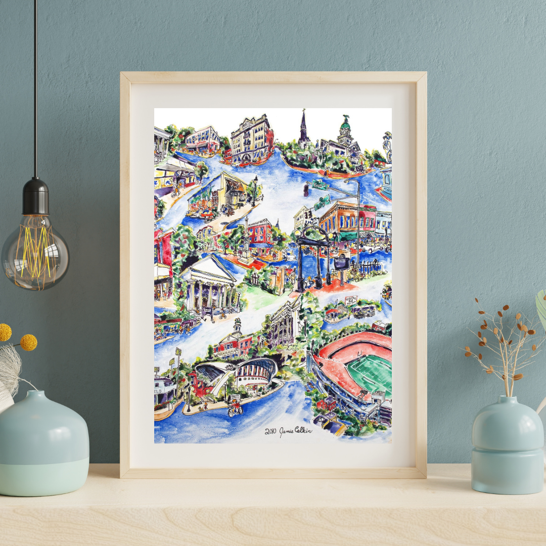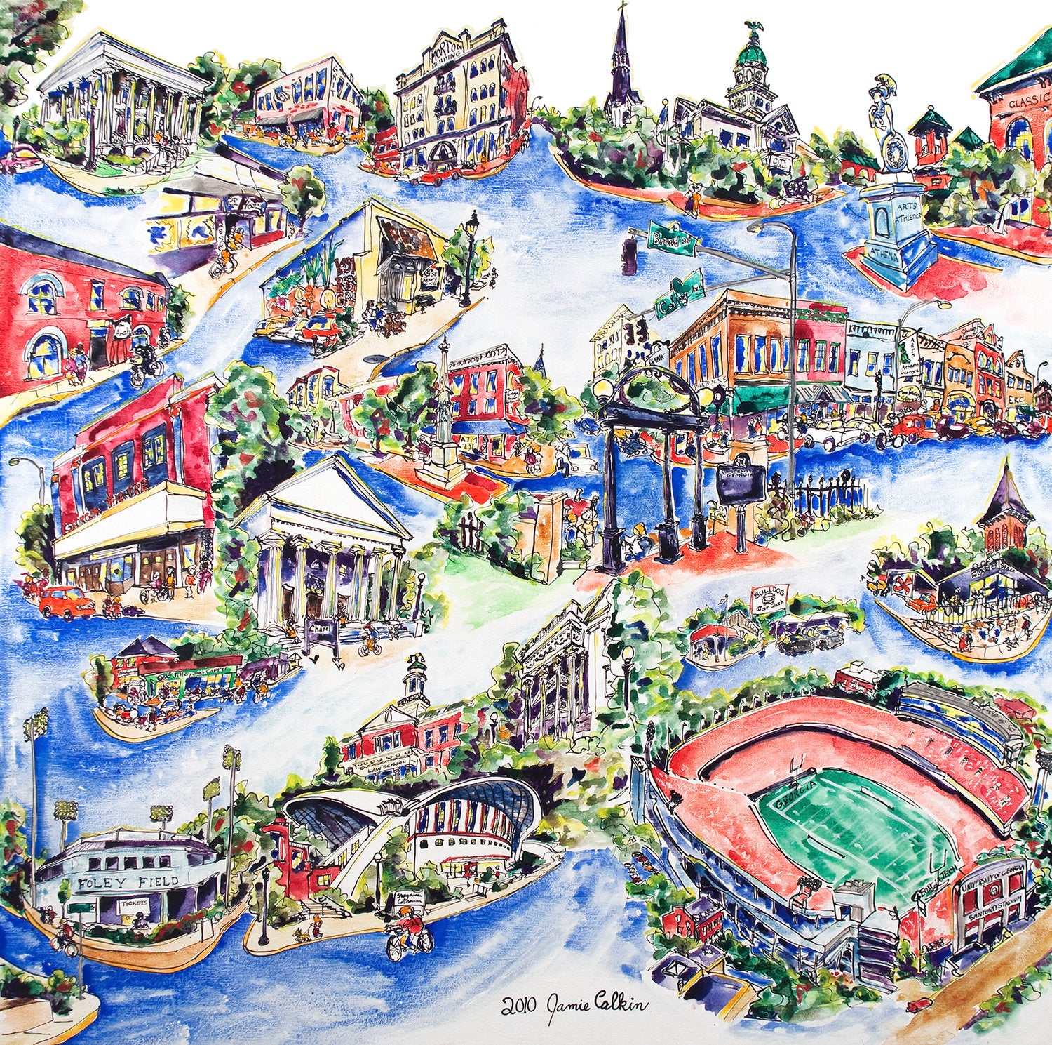 ~Created in 2010, this still remains to be a popular print that captures the iconic and historical sites and events of Athens, GA.