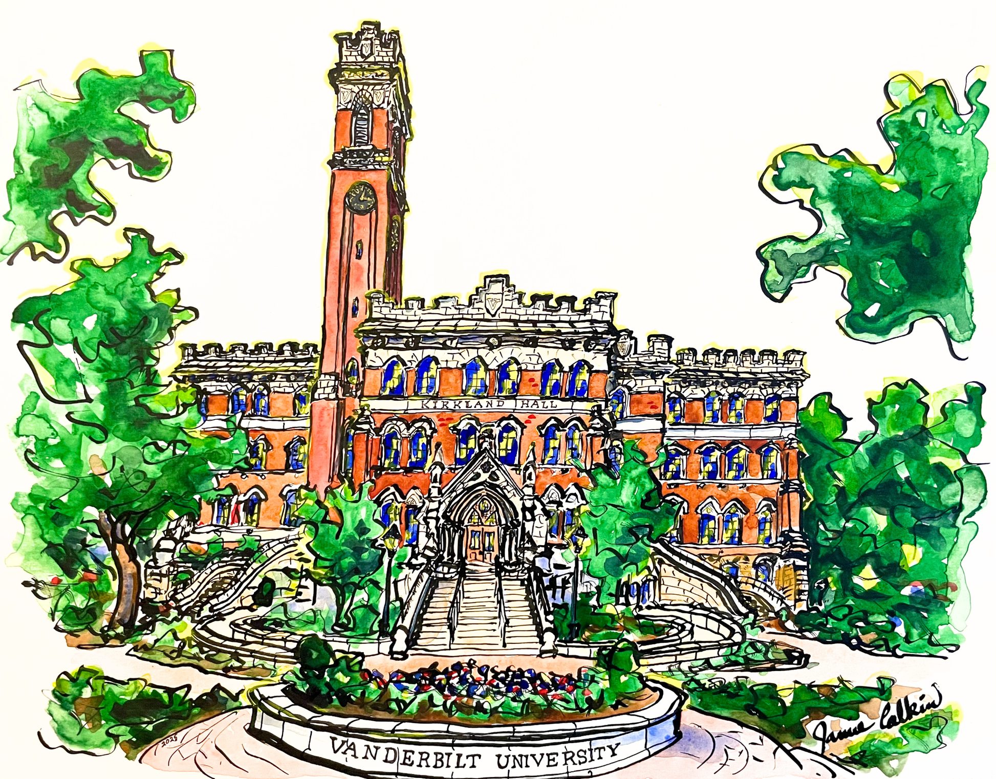 Kirkland Hall is the heart of Vanderbilt’s campus. This print captures its iconic clock tower and timeless charm—perfect for alumni, students, and anyone who loves Vandy.