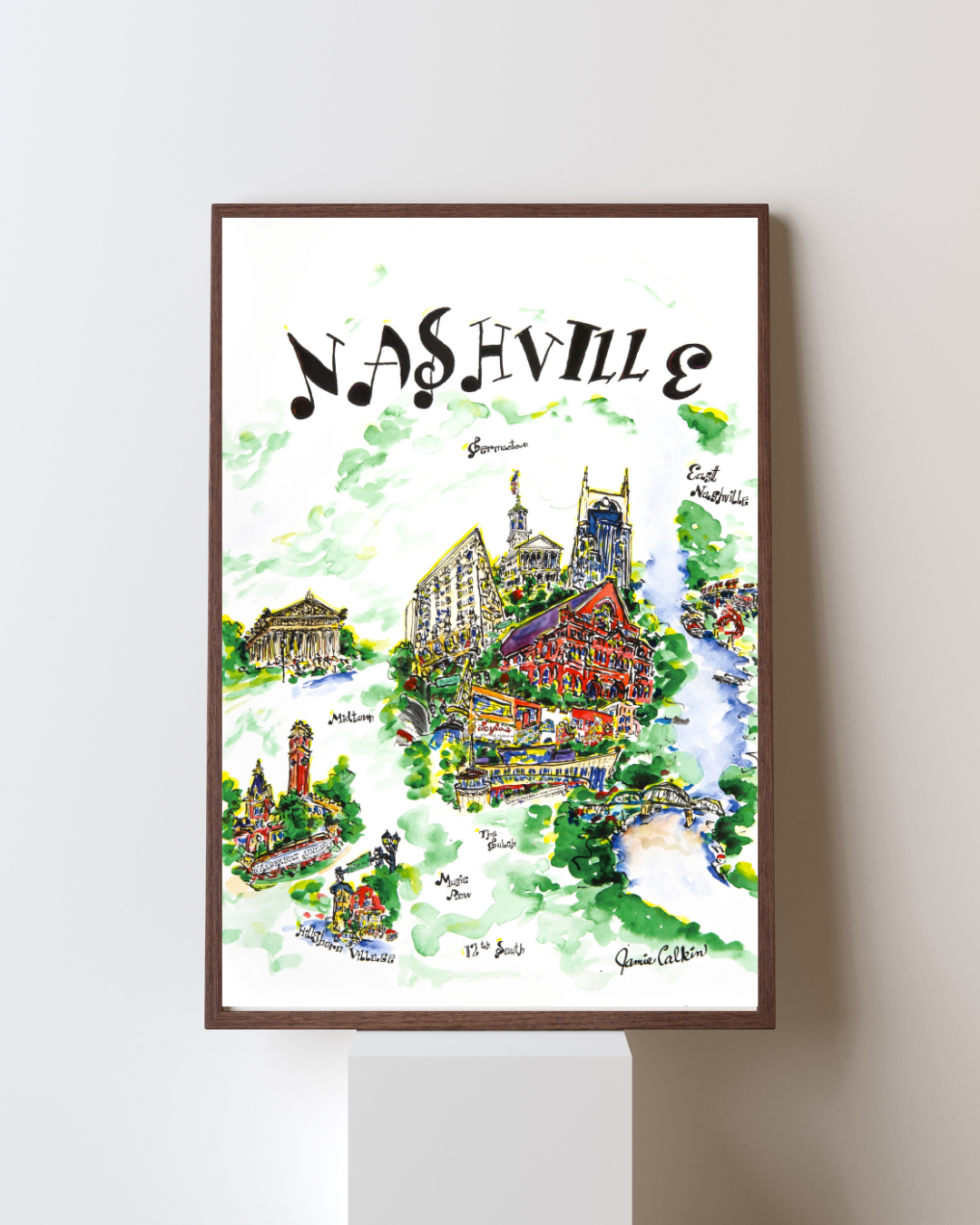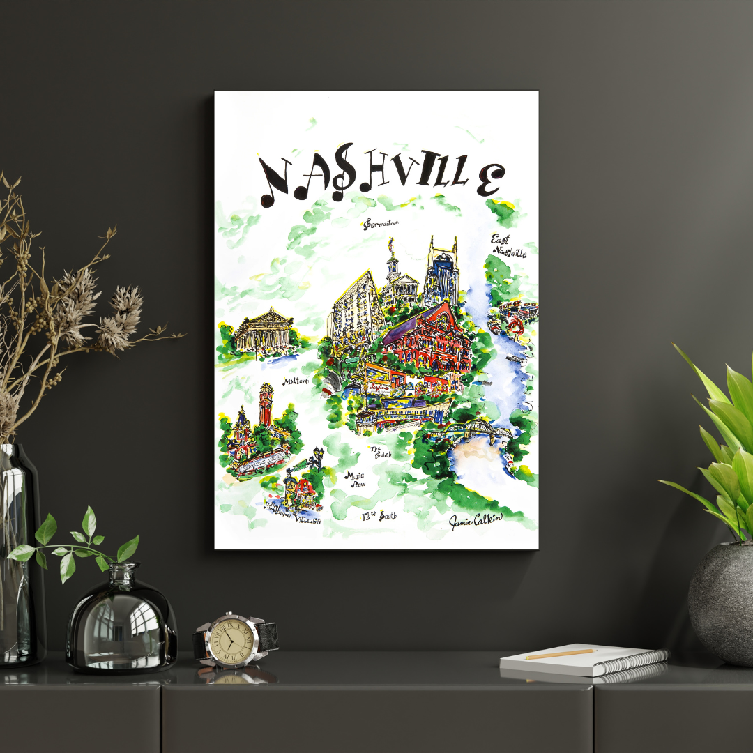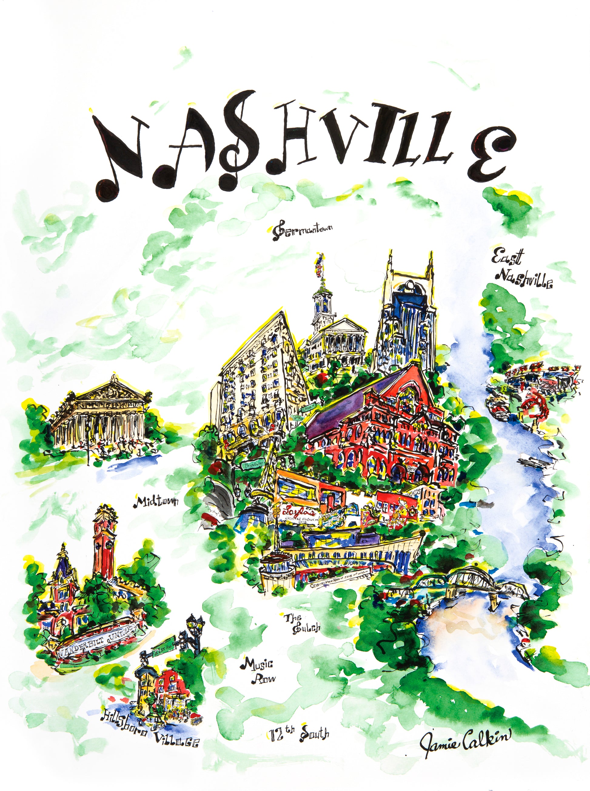 This print a giclee print of an original ink and water color painting of Nashville, TN. Signed and numbered.